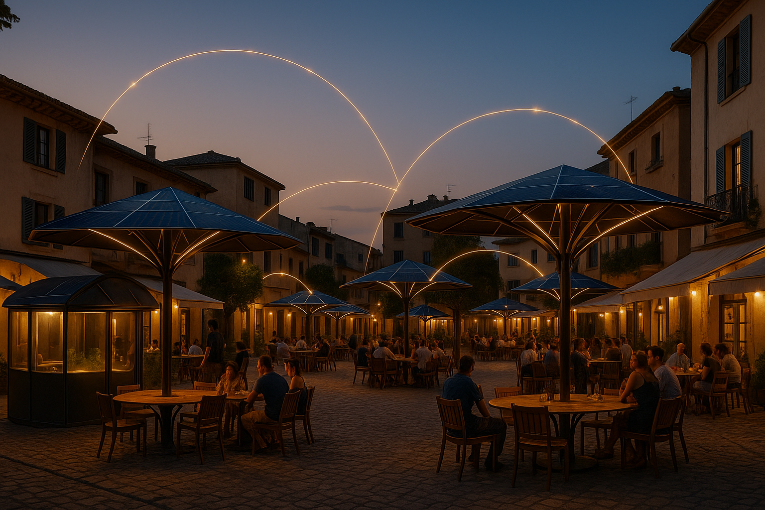 The Solar Forest represents the large-scale expansion of the SolarPatio ecosystem — a network of Solar Gardens, Terraces, Pods, and Agoras that integrate clean energy generation, storage, and exchange across multiple neighborhoods. Acting as a Virtual Power Plant (VPP), it balances local production and demand, stores surplus energy, and exports power to the grid when needed — enabling regional energy independence and climate resilience.